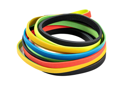 Green resistance band unrolling, representing health, physiotherapy, and home workout concepts, fitness equipment for exercise