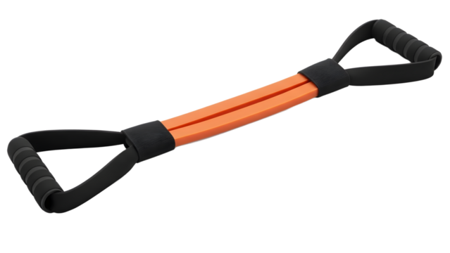 Bright orange neck exercise band stretched slightly to showcase elasticity and flexibility symbolizing gentle resistance exercises for improving cervical strength.