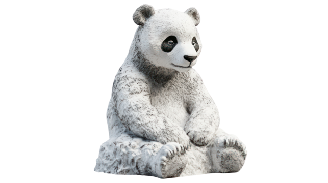 Snow sculpture of a panda sitting ultra realistic high resolution on transparent background