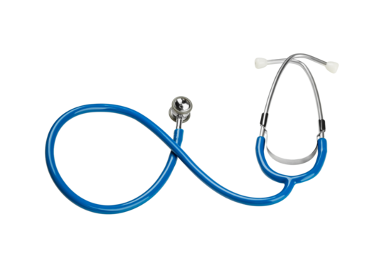 Blue-tubed stethoscope for health pros, isolated on white, PNG