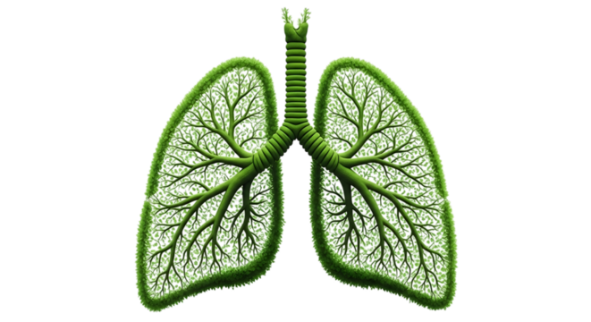 a green lungs model on a white background