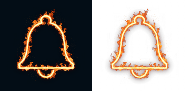 Alarm bell icon formed by pyre trail for app reminder screens, incident response notices and scheduled maintenance updates with open text area for UI mockup headers and system message panels