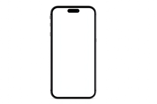 Modern smartphone with blank white screen on transparent background