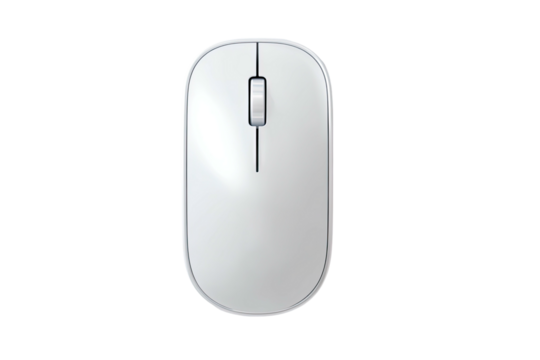 Simple white computer mouse on a black background, top view