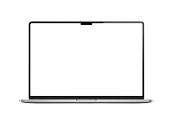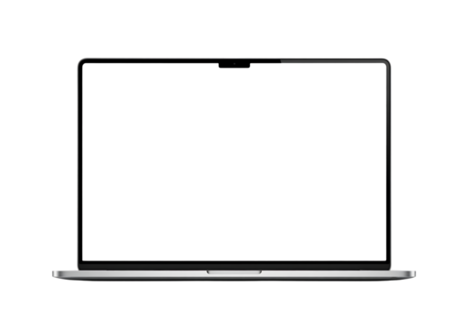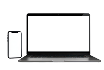 Laptop and phone with blank white screens isolated on a transparent background, centered in the composition