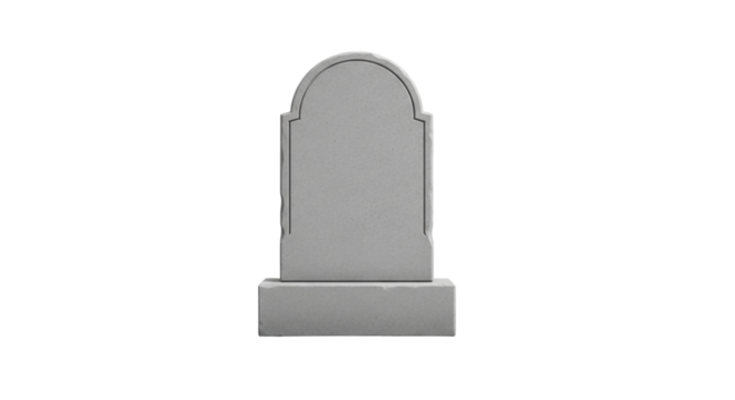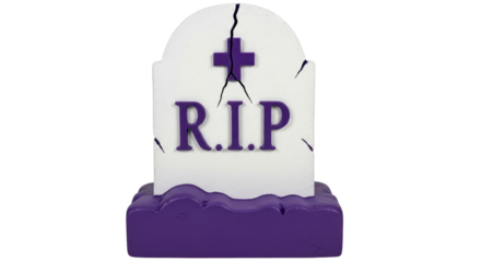 A weathered gravestone with r i p inscription on it on transparent background, png