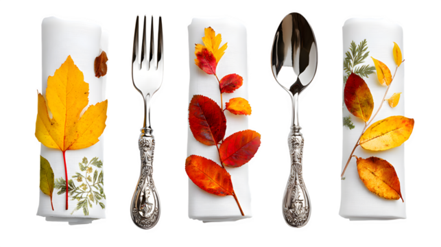 An isolated set of silver steel cutlery featuring a fork and spoon alongside a fork and knife on an empty white plate for a restaurant dinner table setting
