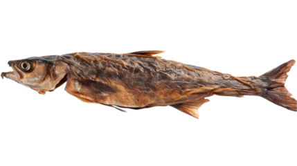 High-resolution image of a dried fish isolated on a white background, perfect for culinary, seafood, or food preservation themes.