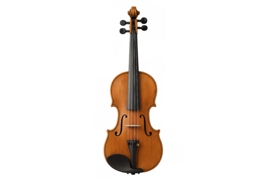 Wooden violin isolated on transparent background with tuning pegs and chin rest