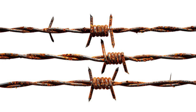 Barbed wire fence vector on transparent background for control visuals