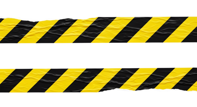 Yellow and black caution warning danger tape strips isolated on transparent background