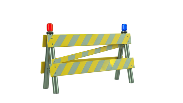 Construction barrier featuring bold stripes and sturdy base illustrating caution and restricted area isolated on transparent background PNG