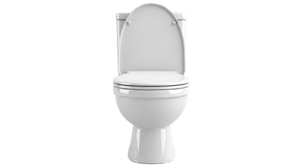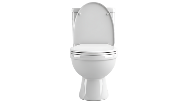 Modern white ceramic two piece toilet with lid and seat isolated on transparent background