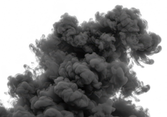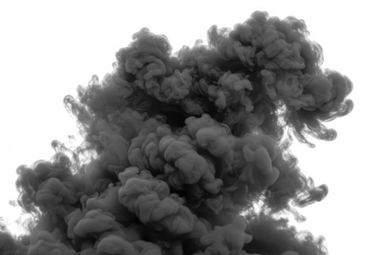 A dense, dark cloud of smoke billowing upwards, isolated on transparent background
