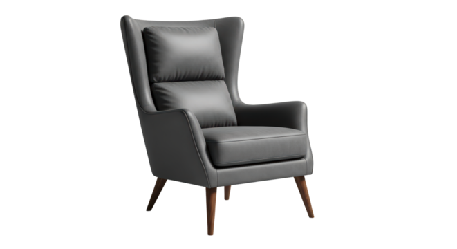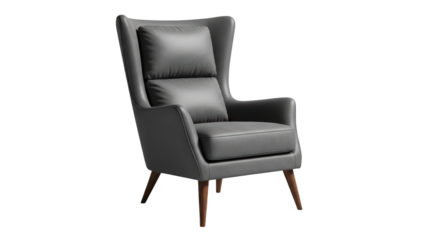 Classic dark grey high-back wingback armchair, featuring traditional design and comfort, isolated on a transparent background PNG (डार्क आर्मचेयर)