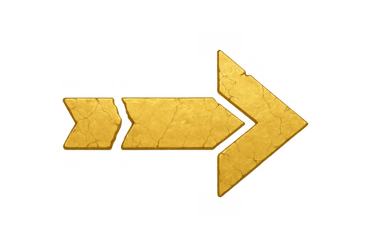 Gold cracked stone arrow icon pointing right, symbolizing direction, forward movement, and next steps for user interface design