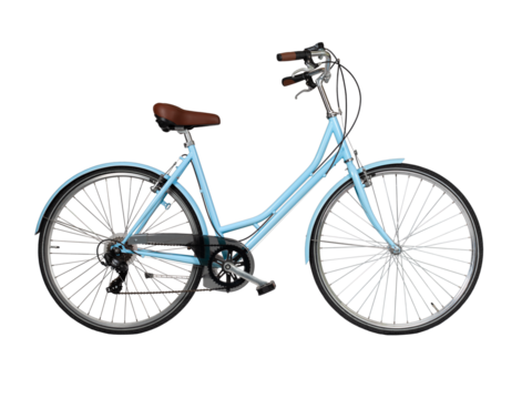Isolated light blue vintage road bicycle, two-wheeled cycle for sport, recreation, leisure