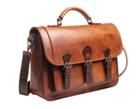 Brown leather bag on transparent background