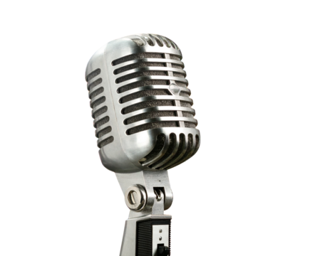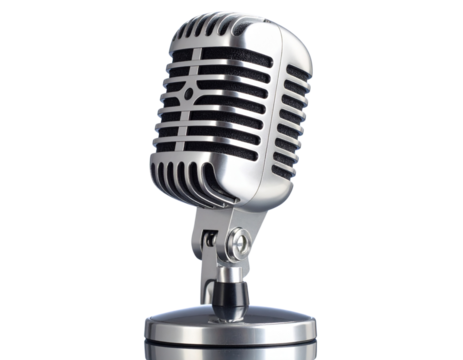 Golden retro microphone isolated on transparent background, a vintage audio equipment for music recording, broadcasting, and stage performance