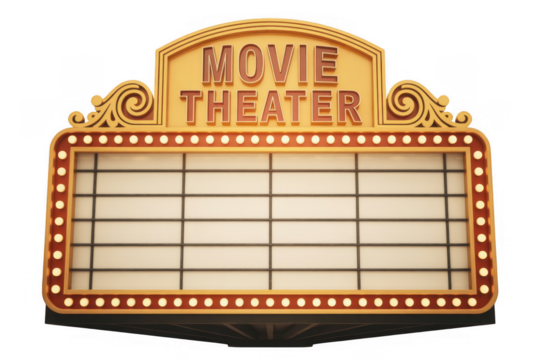 Vintage theater sign with marquee board cinema entertainment isolated on a transparent background