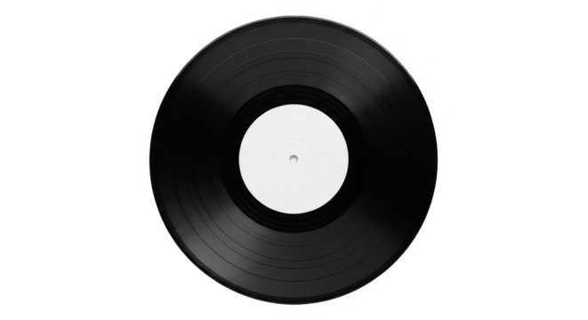 Vintage vinyl record with blank white label for music album isolated on transparent background