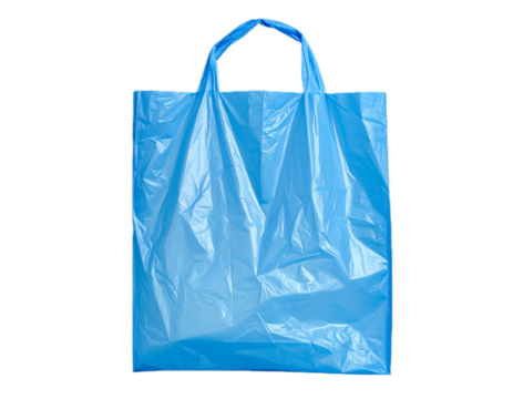 Light blue plastic shopping bag isolated PNG, reusable grocery carrier on transparent background for retail and environmental concepts
