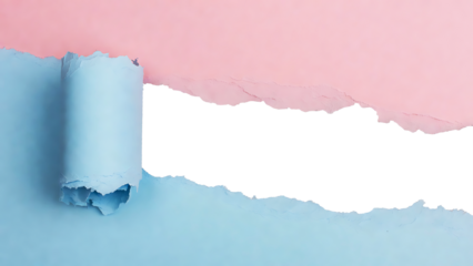 Abstract pink and blue swirl of light and airy textures, a gender reveal concept isolated on white background