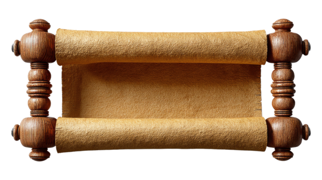 Blank old scroll featuring vintage paper texture, ideal for historical document concepts. Transparent background
