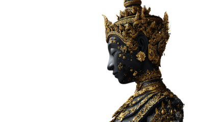Serene Deity: A close-up shot captures the serene beauty of a statue, adorned with intricate details, symbolizing peace and divinity. A symbol of faith and spirituality.