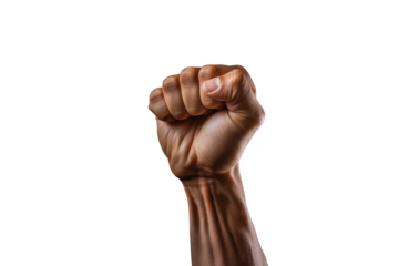 Close up of Raised fist isolated on transparent background.