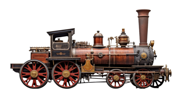 Isolated Antique Bronze Cannon with Ornate Wooden Wheels