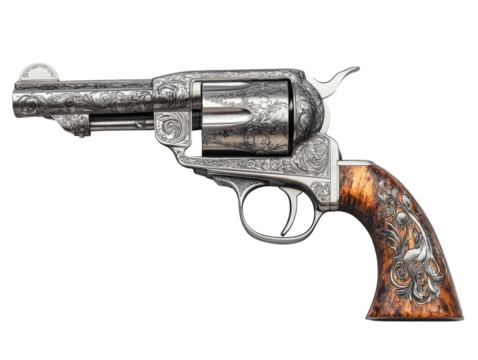 Gleaming Revolver of Cowboy on Clean White Background with High Detail