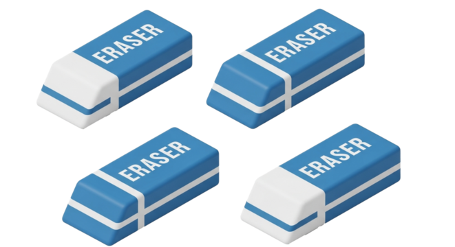 Professional-grade rubber erasers, essential stationery for educational and corporate drafting tasks on transparent background.