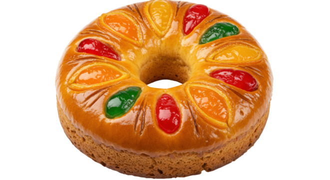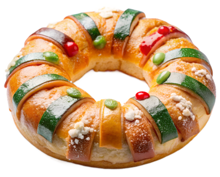 Roscn de Reyes Traditional Spanish Epiphany Cake isolated on transparent baackground