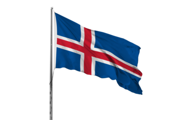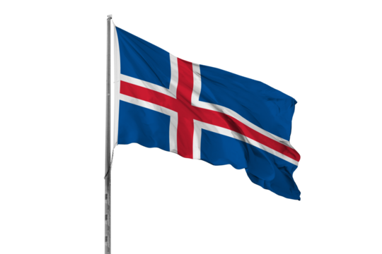 Icelandic Flag Waving on a Pole, Vibrant Blue and Red Cross