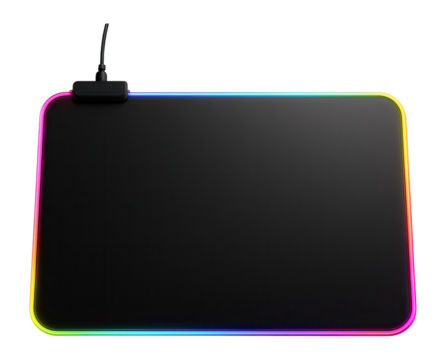 Closeup of a modern black gaming computer mouse with vibrant customizable rgb led lighting, isolated on transparent background