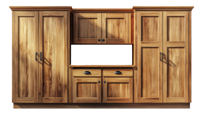 Old wooden cabinet isolated on white background, featuring vintage design, natural wood grain, aged texture, rustic charm, and antique storage perfect for interior decor, furniture collections, and re