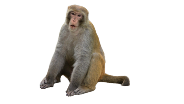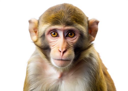 Rhesus Macaque Monkey Portrait Isolated on Transparent Background
