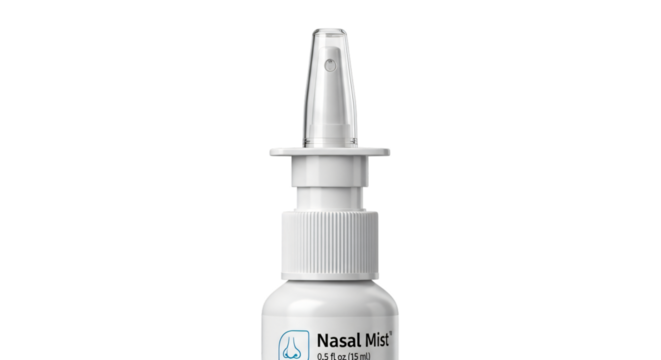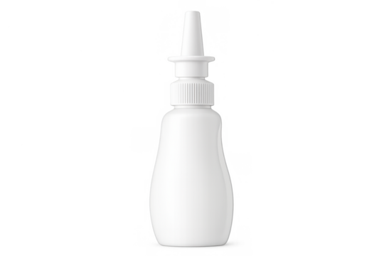 White nasal spray bottle for allergy relief