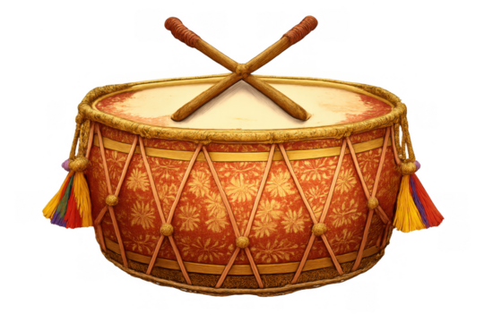 A vibrant set of bongos, perfect for adding rhythm to a tropical or world music space.