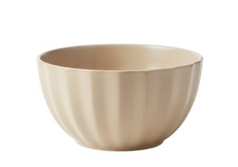 Beige ribbed ceramic bowl smooth matte finish isolated on transparent background