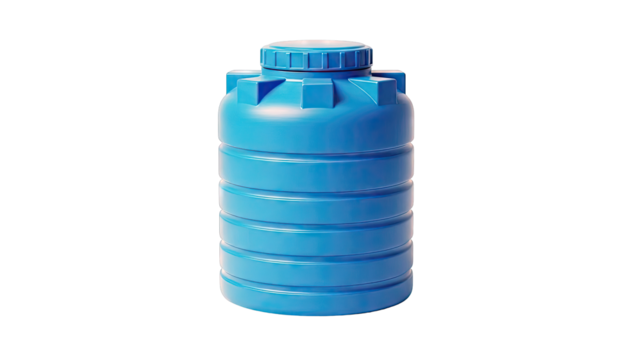 Blue plastic water tank with ribbed design