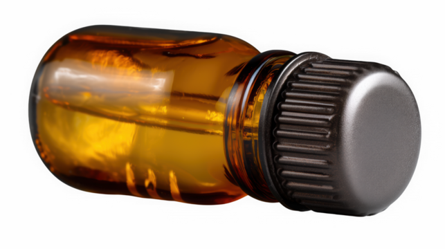 Brown glass bottle with ribbed cap, concept of medicine, pharmacy, healthcare, pharmaceutical product, tincture, medical supply, transparent background
