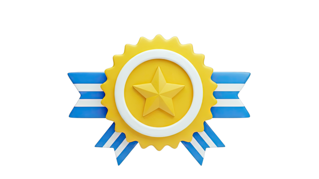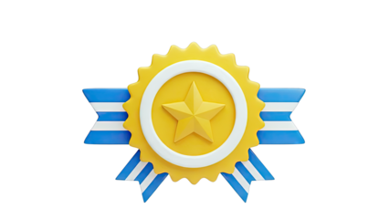 Award ribbon featuring star and smiling rosette on transparent background