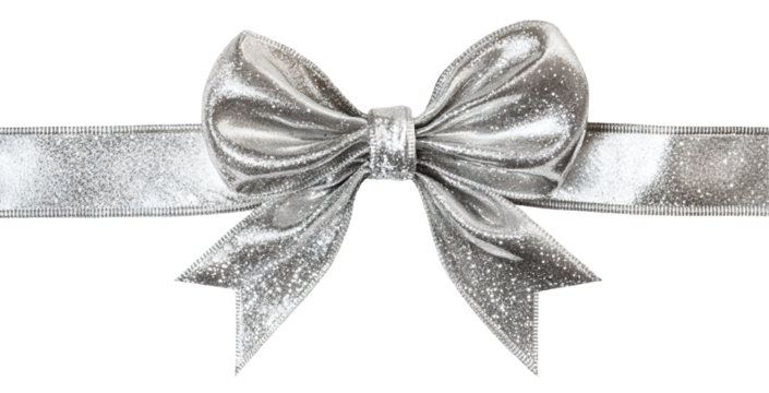 Elegant silver ribbon with a neatly tied bow, isolated on a transparent cutout background