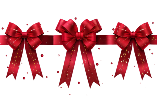 Set of red ribbon bow cut out transparent isolated on white background PNG image