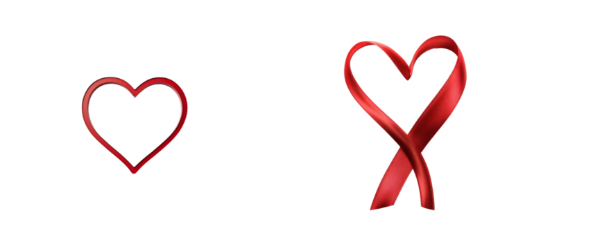 Pair of red heart shapes, one of ribbon, symbol of love. cut out transparent