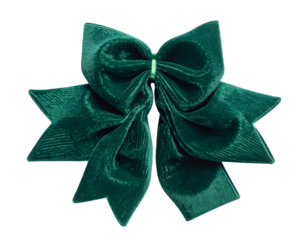 Close-up of a luxurious, emerald-green velvet bow with a classic, symmetrical design