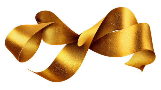 Golden ribbon spiral on transparent background for decorative use
