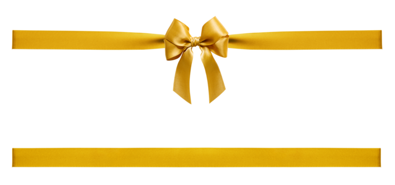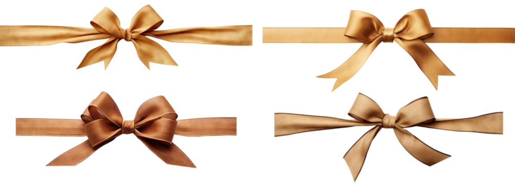 Group of Gold Ribbons. A photo showing a collection of gold ribbons arranged neatly. on a White or Clear Surface PNG Transparent Background.